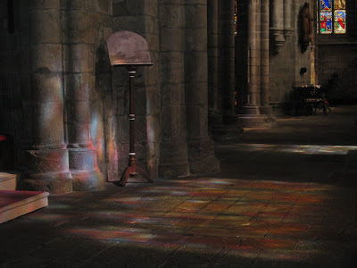 フランスの田舎にある国鉄駅の周りはだいたい閑散としていて何もない。潰れたのかお休みなのかわからないようなお店ばかり。でも一軒だけ人の出入りのあるお店を見つける。手作りの焼きたてピッツァのお店(持ち帰り専門)だった。ピース売りはしていないようだったので、ムニュにあったパニーニ・プーレを注文。焼き上がるのを待つ間にトイレを貸して下さいと頼むと、トイレの前にオーブンがあっていま高温なので無理と断られる。フロマージュとトマトソースの入った熱々のパニーニを頬張りながら、「Centre ville(市内へ)」の指示を頼りに街を歩く。10分くらいたつとちらほら人の姿も見えはじめて、街らしい雰囲気になってきた。町役場 Mairieのあるロータリーに出ると、ようやく街の地図の看板を発見。ノートル・ダム教会を探すと、もうすぐ目と鼻の先だ。小さい街でよかった。大きな教会はたいてい街の中心に建っているので、迷ったらとりあえず教会へ行くのがいいとよく言われるけれど、まったくその通り。これが街の中心かと思うような小さな商店街の通りを歩いて行くと、左手に教会らしき建造物が見えてきた。