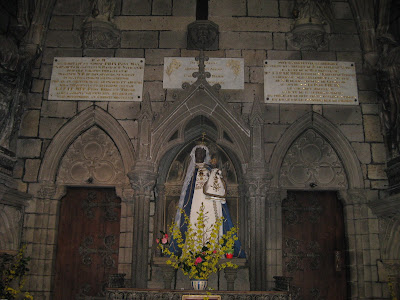 礼拝堂のなかに置かれた黒マリア像とイエスは、入口のマリア像と違って端正で奇麗な顔立ちのマリアだった。純白のレースと下に飾られた白いお花がよく合っている。