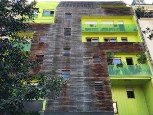 6年前に来たときは夜だったこともあり通りの様子に気が行かなかったけれど、今回はゆっくり歩きながら周囲に目が行く。もしかすると6年前にはなかったと思われる黄色の外壁のアパルトマンが目につく。