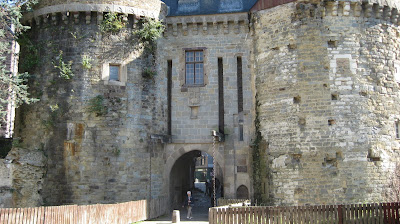 このファサードを背にしてさらに路地を進んで行くと、古い城門跡が見えてくる。この写真は門をくぐり抜けて振り返って写したもの(この門の後方に大聖堂が位置することになる)。城門の右にある但し書きによれば、1440年に建立されたこの城門はブルターニュの歴史で重要な意味をもつ。その昔レンヌの公爵や伯爵領主たちが初めて入場するとき、ブルターニュ公国の自由と権利を尊重する宣誓の誓いがこの門の前で行われたそうだ。フランスのなかでも異なる民族、ケルトを出自とするブルトン人の国ブルターニュは、固い結束のもとで自分たちの文化を守ってきたのだろう。この城門はその歴史の一端を物語っている。いま振り返ると、ひとりふらりと歩いたあの文化遺産の日、知らず知らずのうちにブルターニュの歴史に入り込んでいたのかもしれない。ちなみにこの城門手前の左手に見える一軒がお気に入りのクレープリー屋さん。レンヌには何十軒もクレープリー屋さんがあるけれど、ここはビオの食材のみで作られていて、パリッとしたそば粉の生地も具材もたっぷりで美味しい。