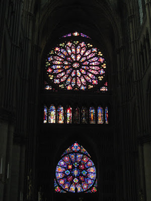 サンドイッチとブラウニーの昼食を食べた後、貸切バスでエペルネーから1時間ちょっとのところにあるランスの大聖堂へ。ランス近郊に生まれ、この地に没したギョーム・ド・マショーは、14世紀フランスのパリを中心にした中世の音楽アルス・ノーヴァ Ars novaの代表的な作曲家。ランス大聖堂のためにノートル・ダム・ミサ曲を作曲したといわれている。ソルボンヌ大学の数学者/天文学者ヨハネス・デ・ムリスの論文(1321)によって定量記譜法が導入されたアルス・ノーヴァの音楽では、テノールのリズム構造に基づいてモテットの長さ、構成、旋法、内容が決められ、上声部の歌詞と音楽の形式もテノールに沿って形成される。この等段落法による「イソリズム・モテット」は、ゴシックの合理的組織化を象徴する音楽として知られ、特にマショーはこの分野で大きく貢献したといわれている。アルス・ノーヴァの音楽形式やリズム法は、現代の作曲家にも大きな影響を与えるほど複雑で奥深い。この時期は色々と大変な時期でもあったけれど、この滞在中にアメリカから来た担当者と話し合いを持ち、パリへ移行することが内諾された。この話し合いもあり、少し街の外れにあるレオナルド藤田のシャペルを見にいけなかったのは残念だった。