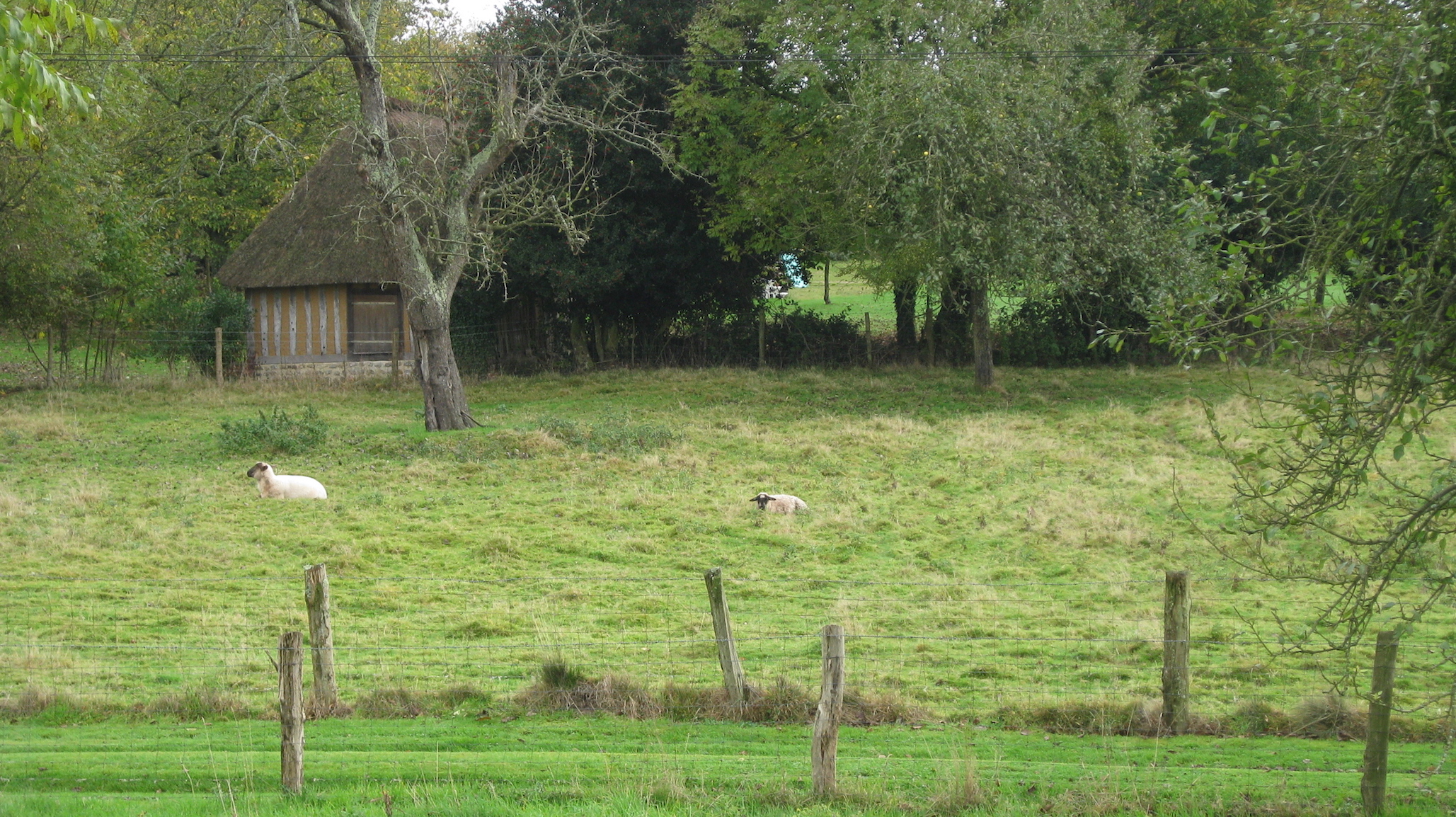 Toussaintの休暇中に友人Lの実家のあるノルマンディーへ。レンヌからカンCaenまで電車で行き、そこから車で迎えに来てもらって2時間ほど。周りには文字通り何もない。電車もこの辺りは走っていないので、まさに陸の孤島だ。1日午後レンヌを出発して今日3日午後に帰ってくる駆け足の旅ながら、すっかり葉のなくなった広葉樹にヤドリギ(宿り木)の房 touffe de gui がいくつもできる北ならではの木々の風景、そしてL家の心のこもった温かいおもてなしを受けて素敵な滞在になった。今回の留学でこんなにいろんなところを訪れる機会が待っているとはつゆ知らず。トゥールの語学学校のバスで行ったシャンボールとシュヴェルニーの古城巡りを除いて、カルナック、シャボトリーの古城でのバロック・コンサート、そして今回のノルマンディーの旅行どれもが、自分では特に下調べもすることなく、宿や食事、移動にお金をかけることもなく、車で自由に動くことができる土地勘をもった地元の友人たちのおかげで実現したものだ。よく車窓から見える古い石造りの家にいつか泊まることができたらいいのになぁと思っていたけれど、まさかLのおうちが18世紀に建てられた古い家だとは想像していなかったので、今回の滞在は思いもかけない幸運に恵まれたと思う。