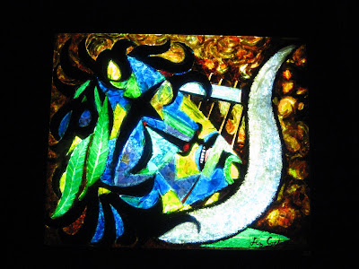 以前に開催された企画展のポスター。ここで、この美術館のことを少し書こう。この美術館は1950年代始めに生まれたジェマイユ・アートL’art du Gemmailと呼ばれる新しい美術の創始者Roger Malherbe氏によって1973年に始められたそうだ。最後に話をしたときにわかったのだが、入り口で私を案内してくれた女性は、創始者の娘のClaireさんだった。彼女自身もジェミスト Gemmisteとして作品を作っているそうだ。Gemmailはステンド・グラスのことだが、教会のものとは大きく異なる手法でこのアートは制作されている。実際にそばで見るとわかるけれど、テクスチュアの感じがもっと立体的で変化に富んでいた。ガラスと宝石の断片を使って張り合わせながら作品を作っていくこのアートは光のアートとも呼ばれ、素材と色彩の豊かさが大きな魅力となっている。ピカソやブラック、コクトーらもこの新しいアートに関心を寄せ、作品を創作したという。こんなアートがあるとは全然知らなかったので、思わずうれしくなった。トゥールでは時間がなくてほとんど観光できなかったけれど、最後にこんな美術館に出会えて最高だった(追記:そういえばこの美術館以外で、トゥール滞在中にちょうど作曲家フランシス・プーランクにちなんだ音楽祭が開催され、一度だけコンサートに足を運んだ。)。