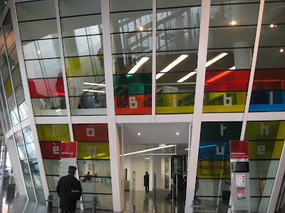 2006年に建設されたばかりのレンヌで一番大きな複合文化施設に、滞在4ヶ月を過ぎて初めて行って来た。遅い!という声が聞こえてきそうだ。「レ・シャン・リーブル」は自由の野原、あるいは自由空間という意味で、ブルターニュ美術館、科学館、プラネタリウム、市立総合図書館、コンサートホールからなり、すべての企画が無料で市民に提供される文字通りの開かれた空間。都市デザインで有名なChristian de Portzamparcという建築家による建物で、内部はパリにあるポンピドゥー・センターを思わせるような現代的な空間になっている。外観に使われているピンク色の花崗岩は、石文化のブルターニュ地方でこれまで多く使われてきたもので、レンヌに新しい文化施設を作るにあたって建築家が意図して使ったそうだ。