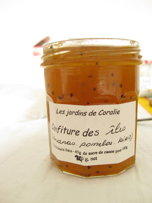 île(アイランド=島)のコンフィチュールという名前の通り、アナナス ananas(パイナップル)、ポメロ pomélos (ザボン)、キウィ kiwiのフルーツが入っている。味見してみたら、パイナップルの甘さはそれほど強くなくて、ほどよい酸味がとても気に入った。ザボンとキウィが良いコンビネーションなのだと思う。なくなるたびに違うジャムを選んで味わえると思うと楽しみ。