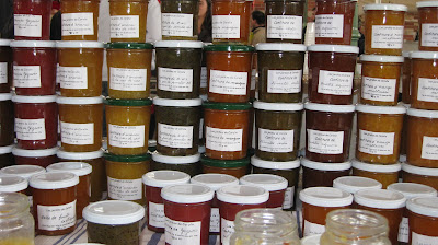 9月半ばごろから朝晩の気温は6度〜8度でも、日中は晴れると18度まで気温が上がっていたレンヌ。でもここ数日は昼間でも13度とだんだん冷え込むようになってきた。大学へ行くのもどこへ出かけるのも、荒井さんの手編みのカーディガンが大活躍している。さて、今日は毎週とても楽しみにしている土曜日。久しぶりにまた食べ物の話題です!いつもより少し遅い朝食を食べて、手洗いで洗濯を済ませると、買い物袋を片手にぶらさげてマルシェへ。今日のいちばんのお目当ては、あとわずかでなくなるコンフィチュール confiture。じゃがいもやたまねぎ、ズッキーニ、キャベツなど野菜をまとめて買ったあと、前から目をつけていたジャムのお店へ向かう。写真に写っているのは全体の3分の1くらい。ほんとうにたくさんの種類があって選ぶのに迷ってしまう。