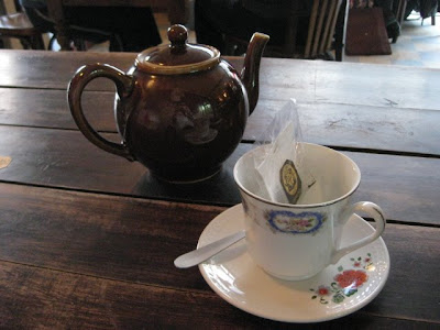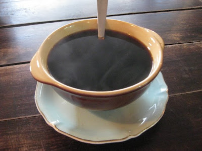 野菜スープの下に載っていたメニューを見て試しに注文してみたら、でてきたのが黒いスープでびっくり。注文するときLucieに聞いたら、彼女のおばあちゃんたち世代の人たちが昔よく飲んでいたスープで、お肉などのフォンを使って作られているらしい。飲んでみたらすごくしょっぱくてまるでおしょうゆスープのようだった。。けっして不味くないけれど、こんなにたくさんは飲めないくらい濃い味。これを使ってお肉を煮込んだりするにはいいかもしれない。