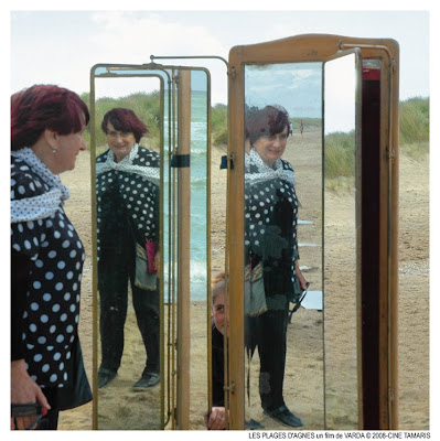 映画は南仏セート Sèteの浜辺に大小さまざまな鏡を置くヴァルダを映し出すシーンから始まって、ベルギーでの幼少時代、家族、ドゥミとの出会い、60年代のパリ、映画仲間たち・・・とヴァルダの視点からその生涯が辿られながらも、映画の中心にあるのは彼女を取りまく他の人々と彼らと結ばれた親密な交流だ。もともと写真家として出発したヴァルダにとって重要な要素である写真や映画から抜粋されたシーン、鏡、額縁、衣装、舞台装置がパズルやコラージュのように脈絡なくちりばめられ、合間に無関係な余談が挿入されながら過去の記憶がつぎつぎと想起されていく。そのひとつひとつのシーンがひとつの絵画や風景のように魅力的で、カラフルで、遊び心とユーモアに溢れている。たびたび登場するヴァルダのおしゃれな服装も大きな楽しみのひとつになる。「記憶(思い出)は、浮かび上がってくる泡のようなものLes souvenirs sont comme des bulles qui remontent 」とは、今回の映画に関するインタビューでのヴァルダ自身の言葉。映画を観たあと読んだル・モンドの批評では、「白昼夢によって今はもう触れることのできないものを浮かび上がらせようとするこの手法 sa manière de faire surgir l’impalpable par l’onirisme 」はシュールレアリスムに通じると指摘されていた。