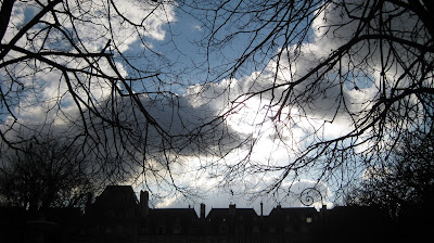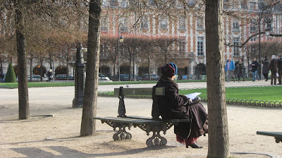 難しい話はこれくらいにして、冬のパリで過ごしたわずかな日々を少し紹介しよう。いつもパリを訪れた際には必ず足を運ぶヴォージュ広場 Place des Vosgesのベンチに座って、しばしひとりでぼーっとする。葉のない木々の枝がこれほど絵になるのはヨーロッパならではなのかな。